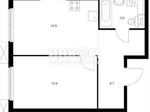 1-комнатная квартира, 10 этаж, 39.1 м2
