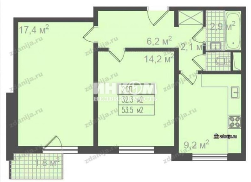 2-комнатная квартира, 3 этаж, 55 м2