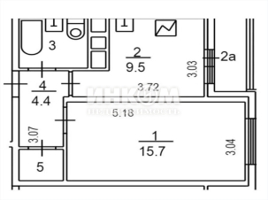 1-комнатная квартира, 9 этаж, 35 м2