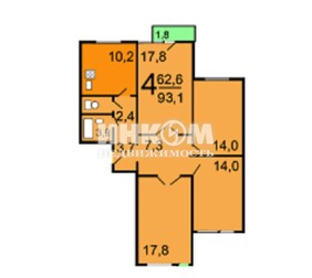 4-комнатная квартира, 93.1 м², этаж 1/16