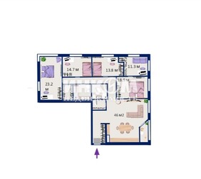Общая площадь 71,5 кв.м, три из...