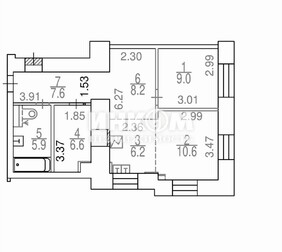 2-комнатная квартира, 52.6 м², этаж 2/5