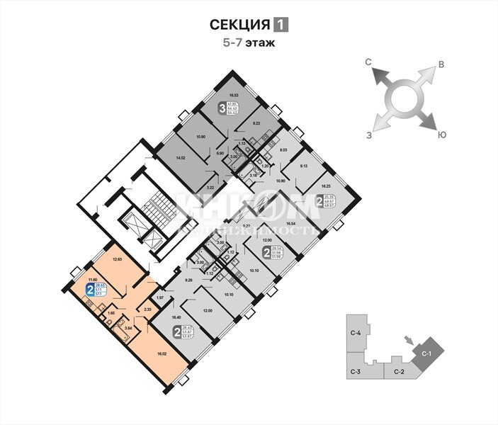 Продажа 2-комнатной квартиры, 57.1 м², этаж 6/16