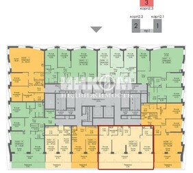 3-комнатная квартира, 64.8 м², этаж 2/16