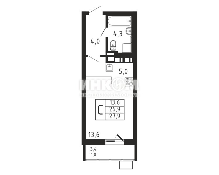 Жилая 13.6 м2