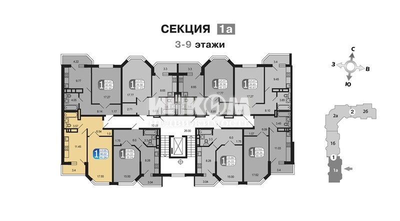 Продажа 1-комнатной квартиры, 41 м², этаж 6/9
