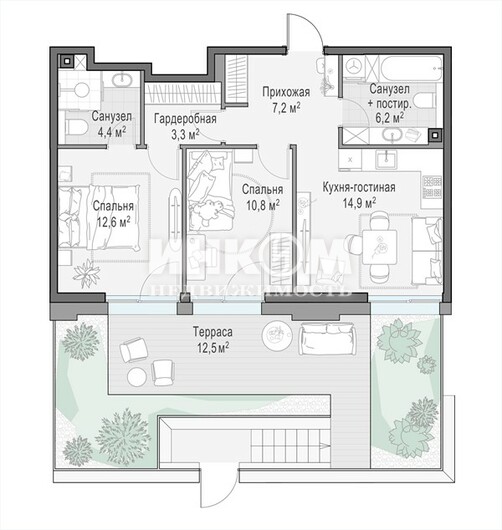 2-комнатная квартира, 2 этаж, 73.1 м2