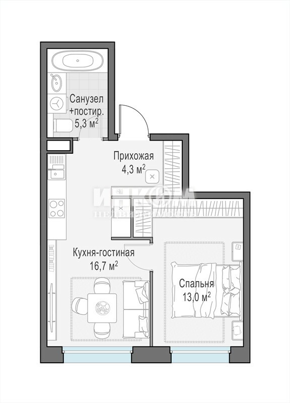 Жилая 23.9 м2