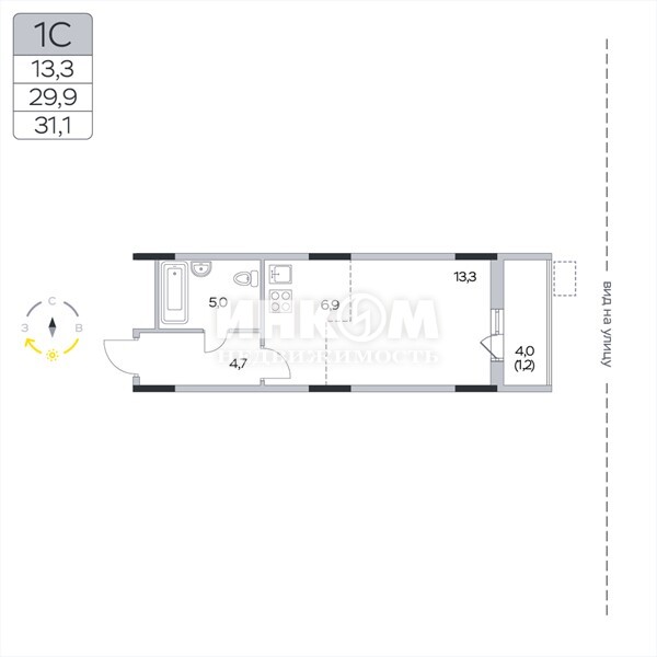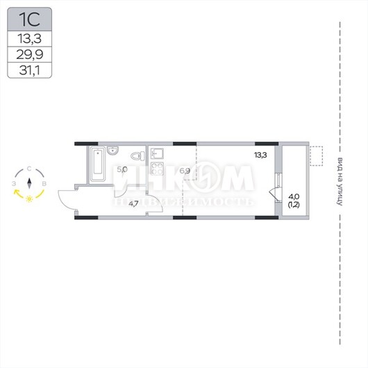 Жилая 13.3 м2