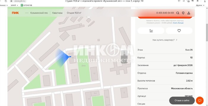 Номер лота: вт-0428372. Дом построен, идет благоустройство территории. ЖК "Кузьминский лес", шаговая доступность от м.Котельники (18 мин.пешком), собственная огороженная территория, благоустроенный двор без машин, окна-на лес, экологичный район, развитая инфраструктура. Кузьминский сосновый лес в 5-ти минутах от дома, свой детский сад и школа. Полная чистовая отделка (ламинат, плитка, обои под покраску, полностью оборудованный санузел, раковина, электричество), видеодомофон. Двор без машин, 26 минут до центра Москвы на метро (м. Таганская). Сдача до 1 февраля 2026 года, один взрослый собственник, быстрый выход на сделку.