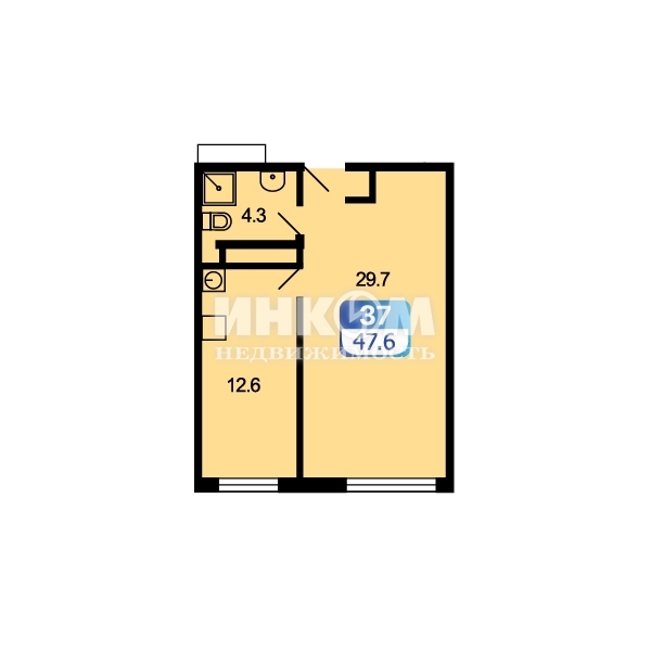 1-комнатная квартира, 4 этаж, 47.6 м2