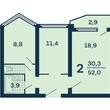 2-комнатная квартира, 3 этаж, 51.8 м2