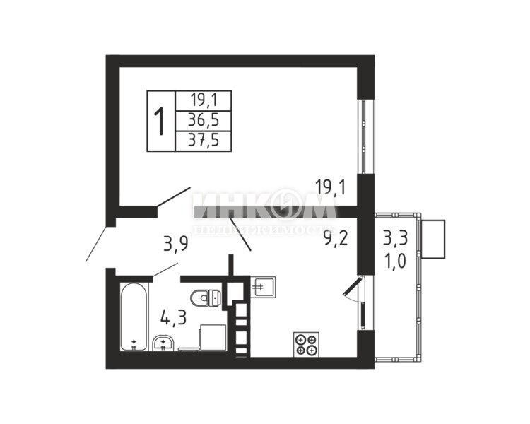 Жилая 19.1 м2