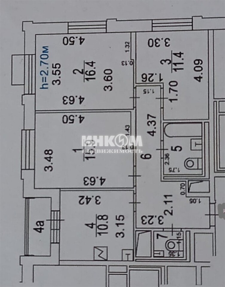 + обозначение смежных комнат