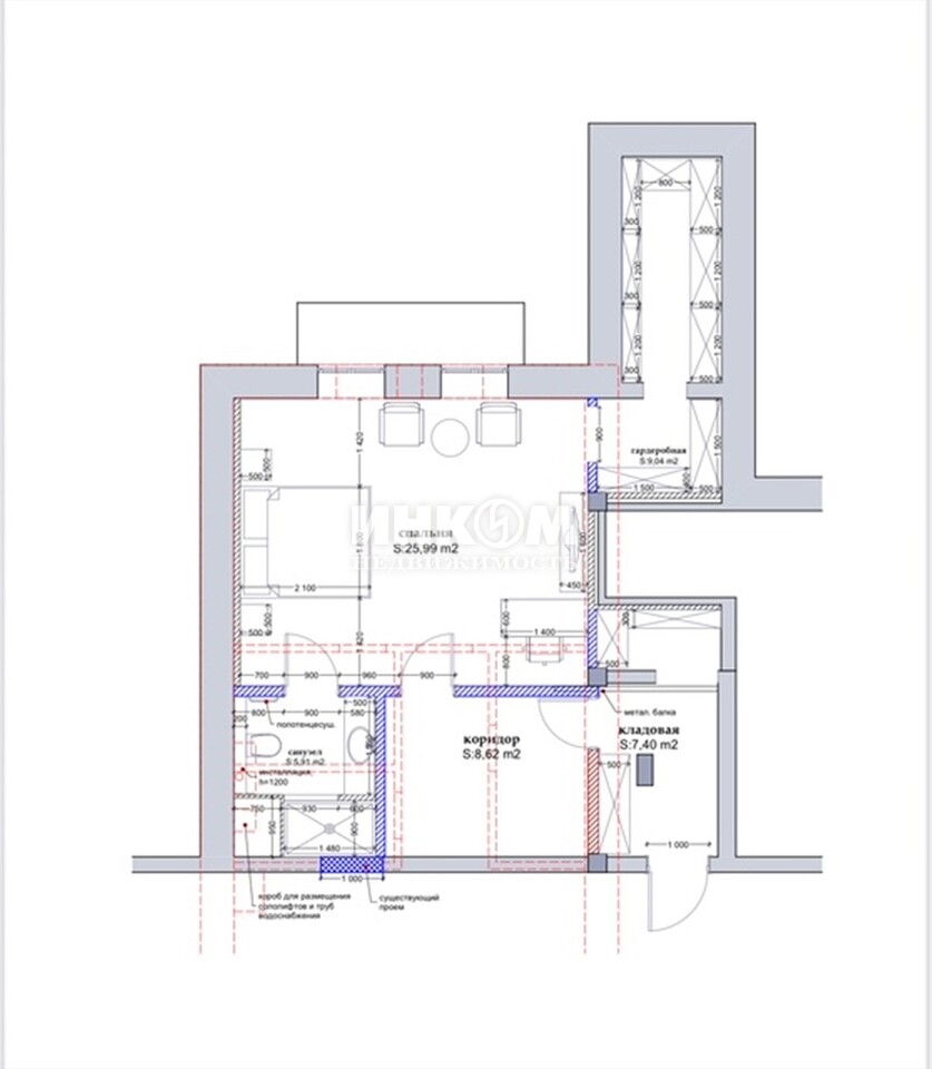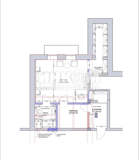 | + | обозначение смежных комнат |