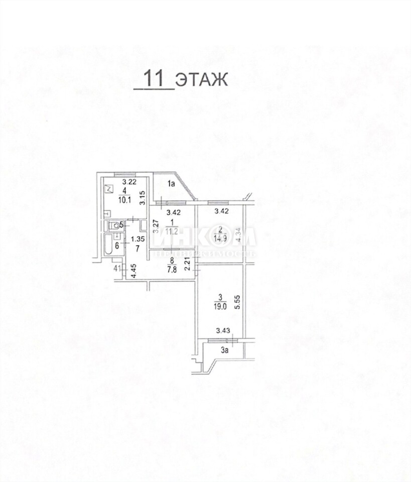 3-комнатная квартира, 11 этаж, 74 м2