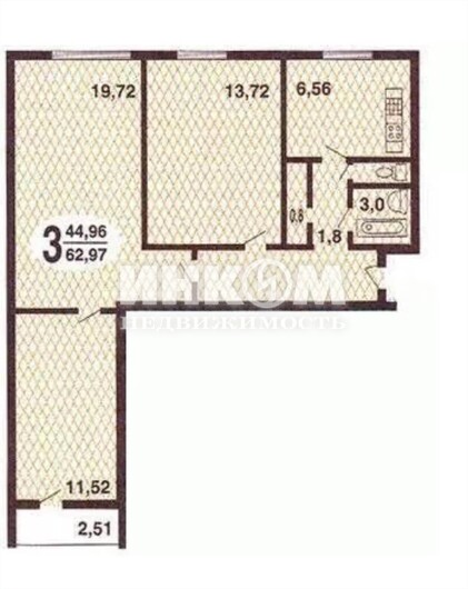 Продажа 3-комнатной квартиры, 63.1 м², этаж 7/12