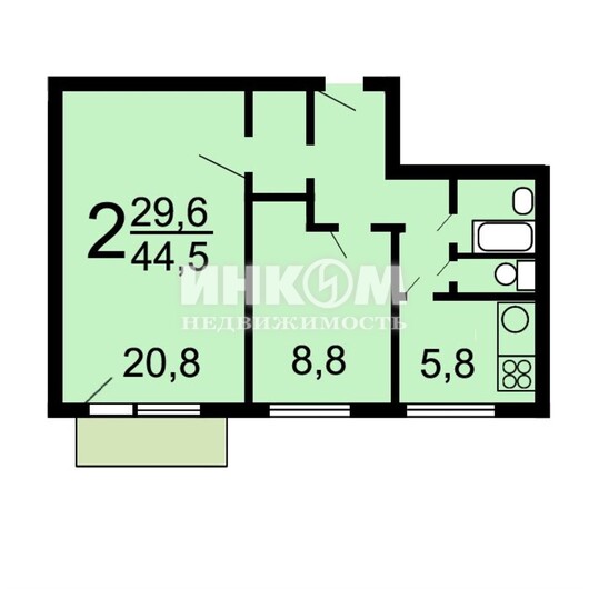 Жилая 29.6 м2