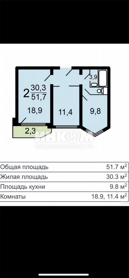 Жилая 30.6 м2