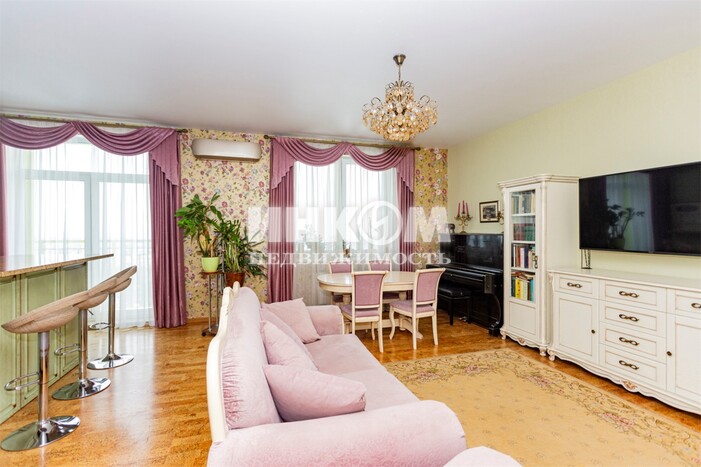 Номер лота: вт-0430862. Продаётся просторная 3-ком.кв. с хорошим ремонтом в ЖК комфорт-класса по адресу: Москва, Рублёвское шоссе, 70к7 - ЖК "Крылатский". Район Крылатское - один из самых экологически комфортных районов Запада Москвы. Ближайшая инфраструктура включает в себя Гребной канал, велотрек, гольф-клуб, прогулочные зоны, пляжи Серебряного Бора, ТЦ "Европарк". Ближайшее метро - Крылатское. В пешей доступности детский сад и школа 7 корпус находится в самом хорошем месте жилого комплекса. Квартира удачной планировки. Окна квартиры выходят на две стороны: панорамный вид (этаж 16/23) на лесопарковую зону и тихий благоустроенный двор. Просторная кухня-гостиная с островом, множеством систем хранения Кухонный гарнитур из массива дуба, столешницы из натурального гранита. Два балкона с выходом из кухни-гостиной и спальни. Две детских комнаты. По всей квартире сделана шумоизоляция (стены, пол, потолок) На полу пробковое покрытие производства Швейцарии, что хорошо удерживает тепло.. Гардеробная комната. 2 санузла: ванна с гидромассажем + душевая. Пол - испанская плитка с теплыми полами. Кухонный гарнитур остается новому владельцу. Оперативный показ. Два взрослых собственника. Есть возможность приобретения двух машиномест в подземном паркинге с доступом не выходя из подъезда.