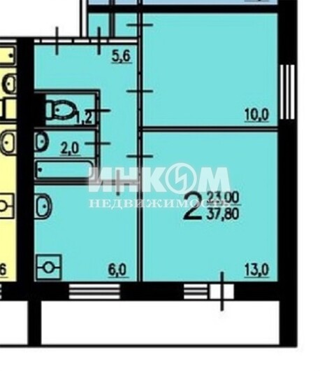2-комнатная квартира, 8 этаж, 38 м2