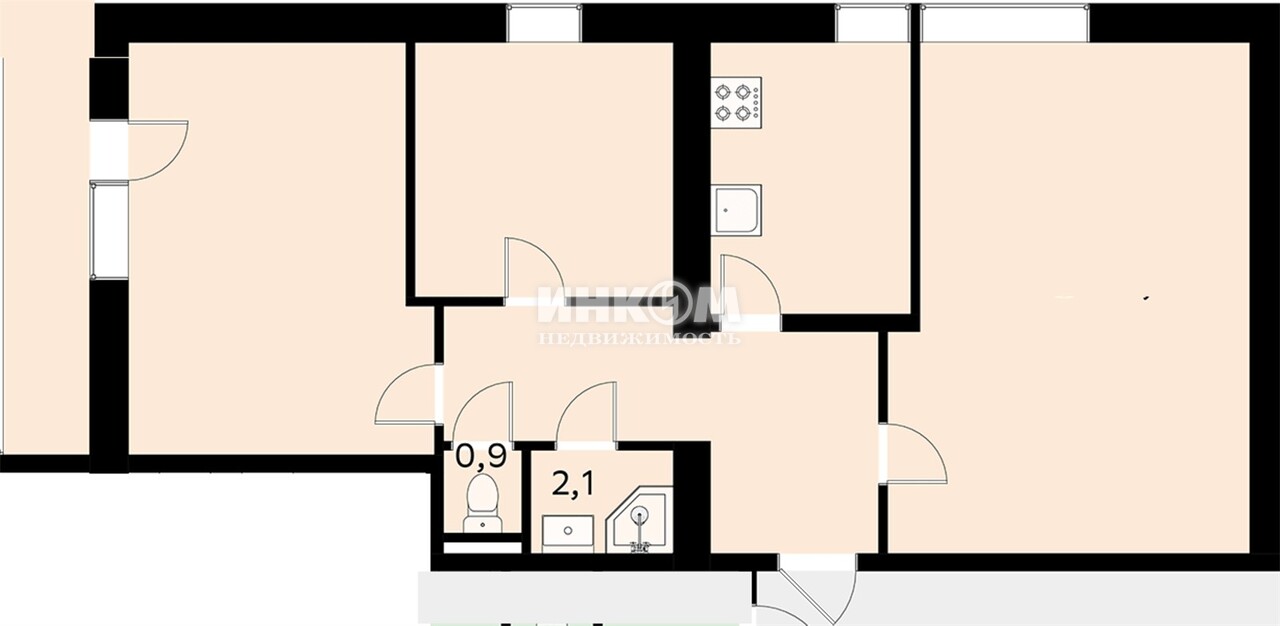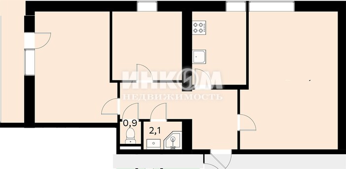 Доля в 3-комнатной квартире, 15 этаж, 46.7 м2