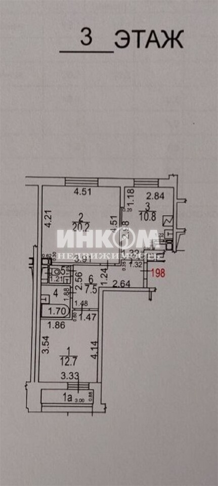 2-комнатная квартира, 3 этаж, 55.7 м2