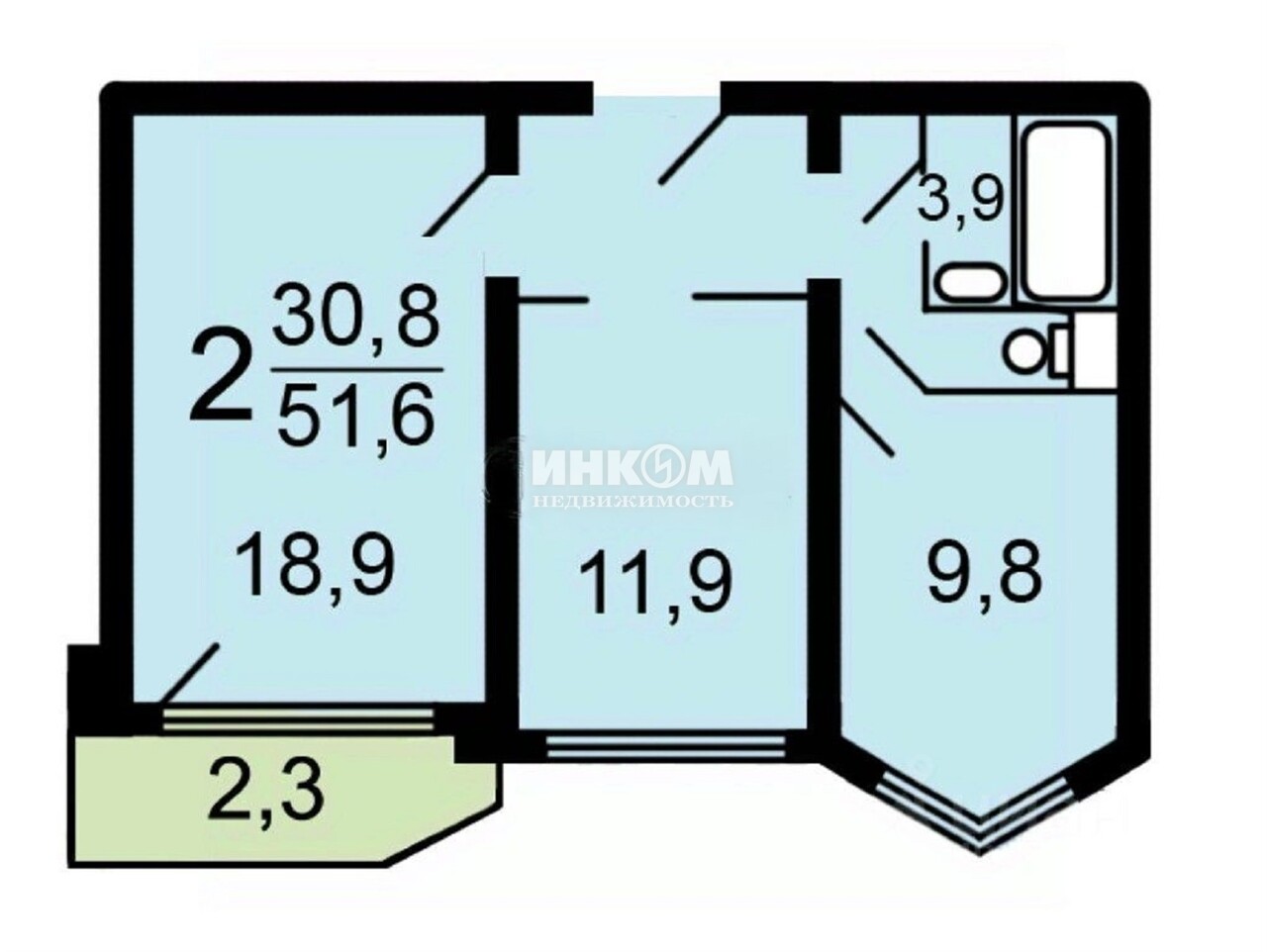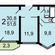 2-комнатная квартира, 8 этаж, 52 м2