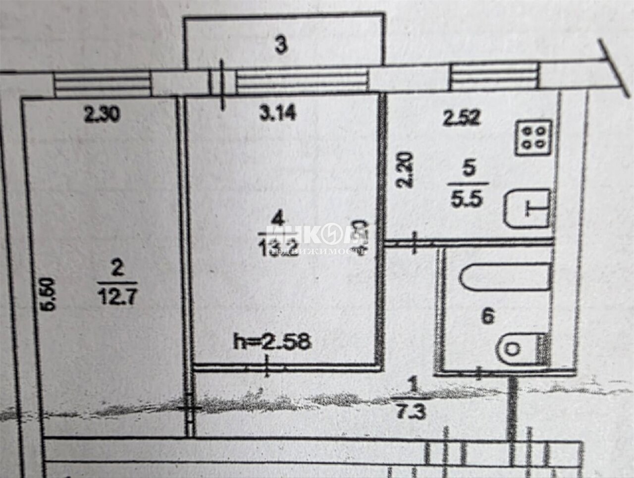 Доля в 2-комнатной квартире, 2 этаж, 26 м2