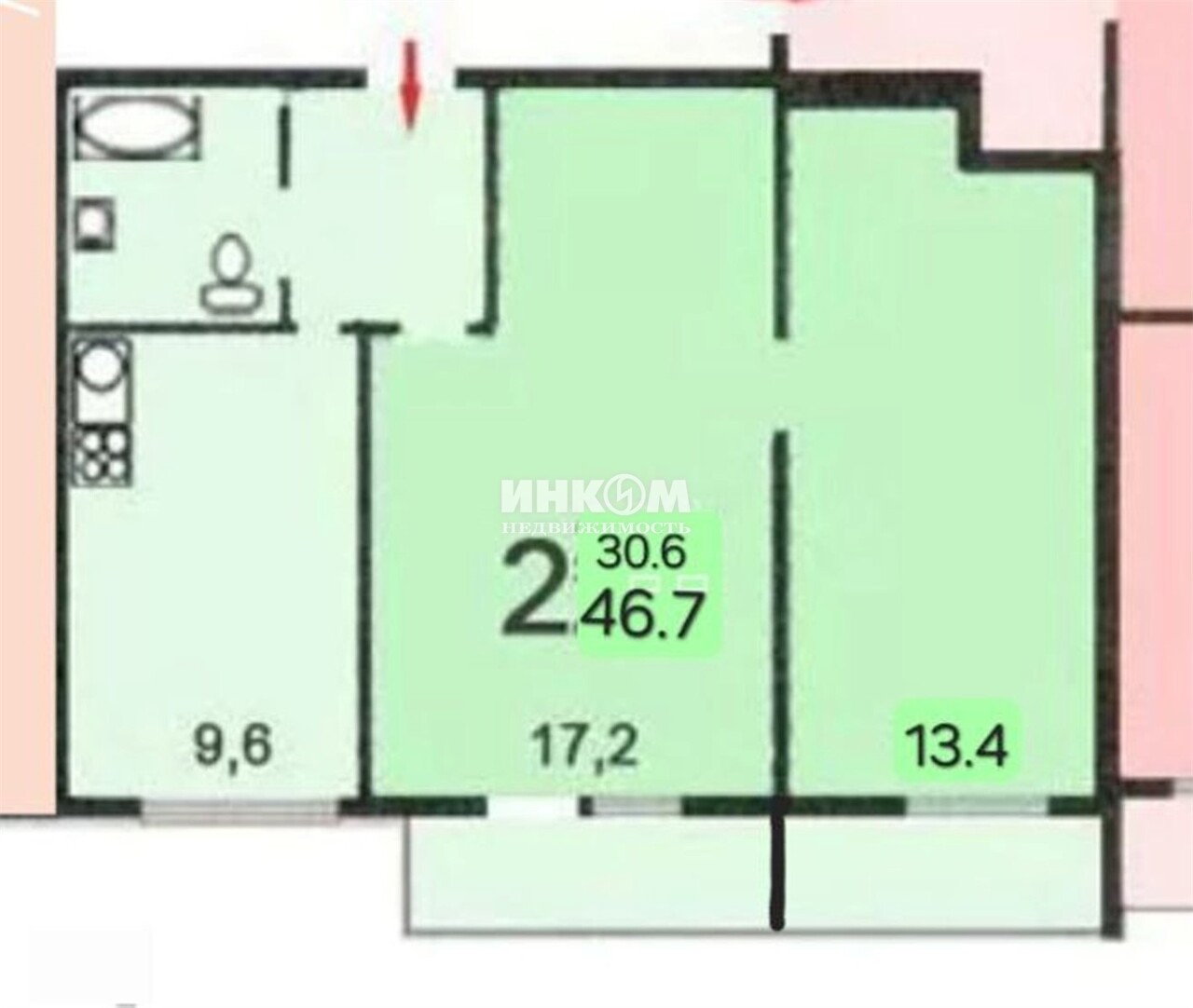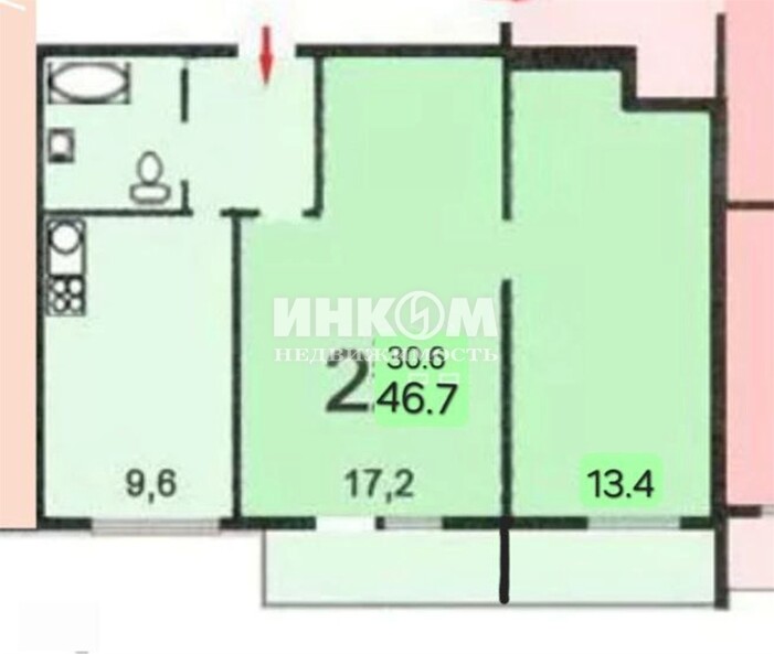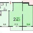 2-комнатная квартира, 9 этаж, 46.7 м2