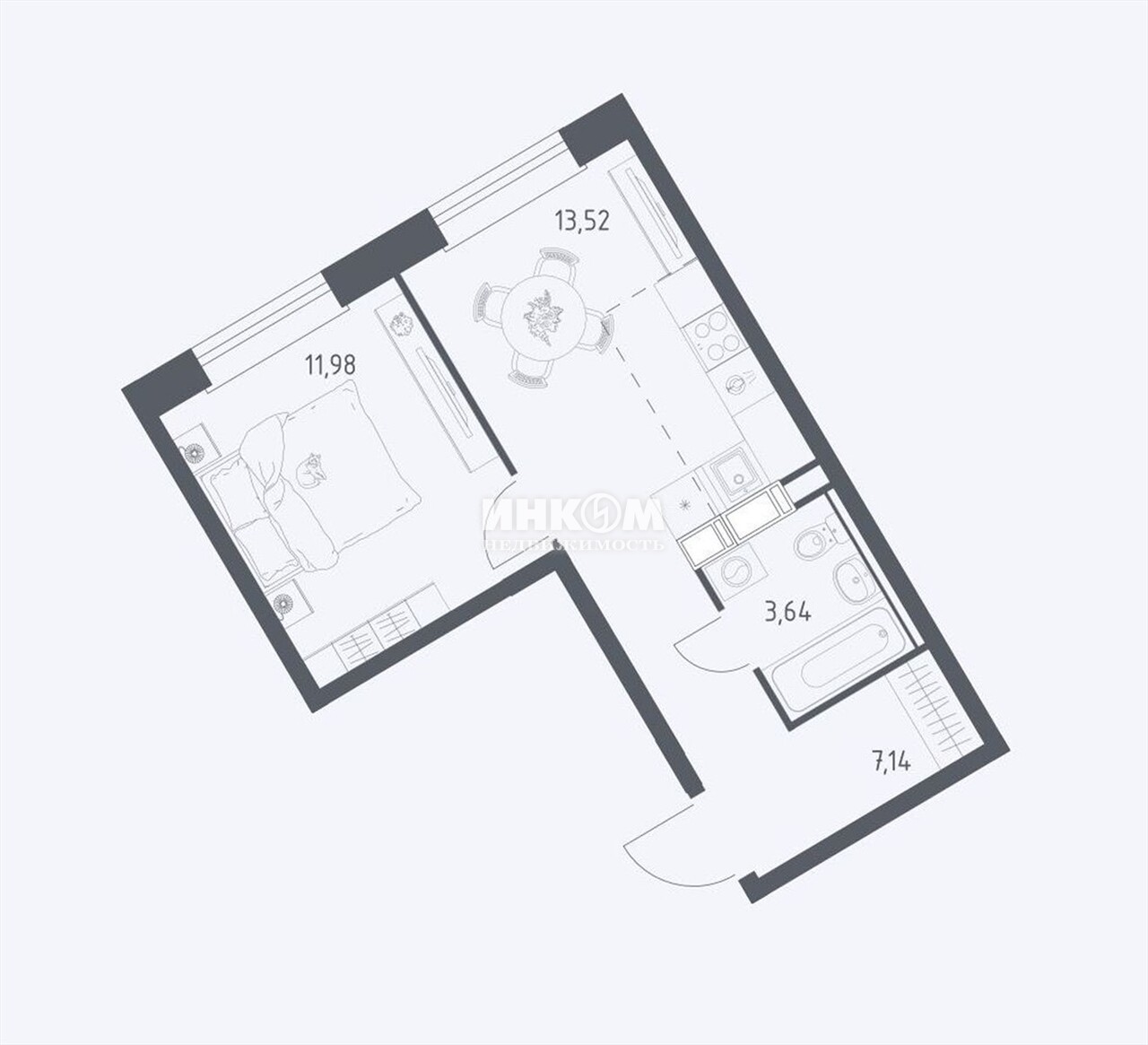 1-комнатная квартира, 11 этаж, 36.3 м2