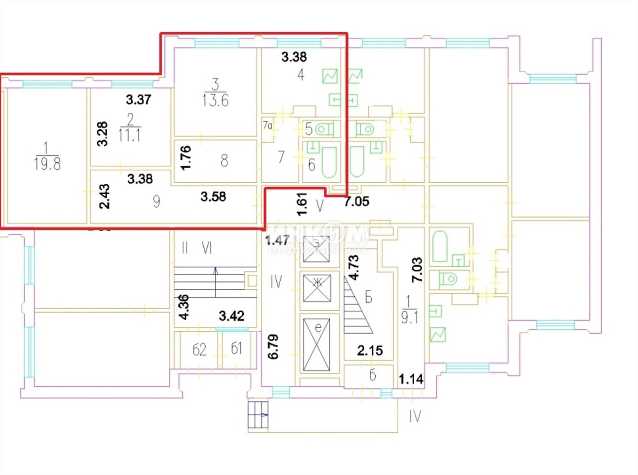 | – | обозначение изолированных комнат |