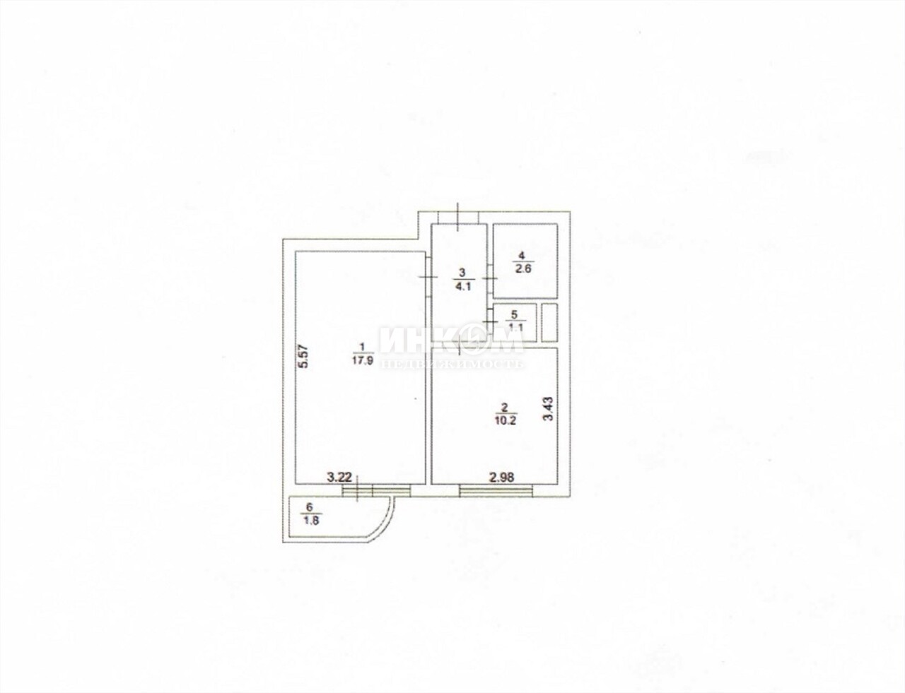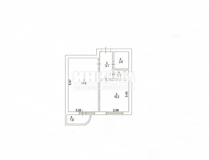 1-комнатная квартира, 6 этаж, 36 м2
