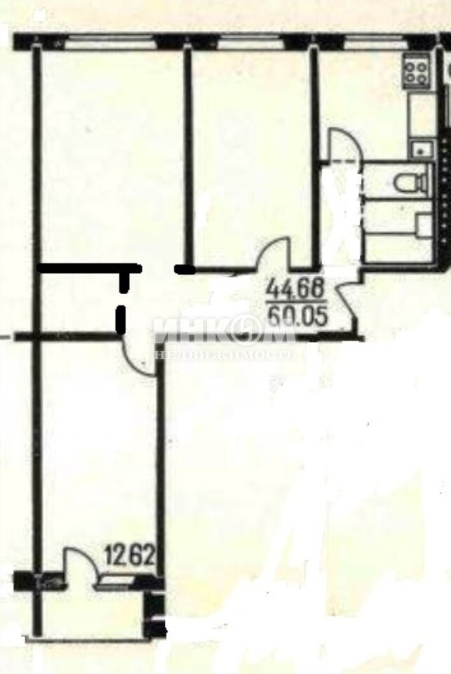 3-комнатная квартира, 6 этаж, 59.7 м2