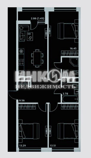 Жилая 43.3 м2