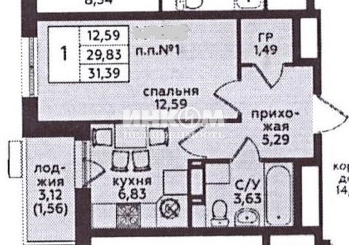 Жилая 12.6 м2