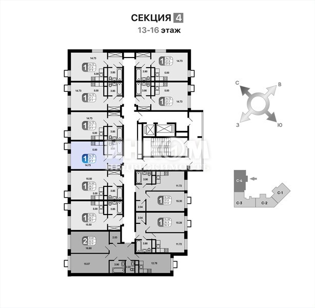 Продажа 1-комнатной квартиры, 27.7 м², этаж 15/16