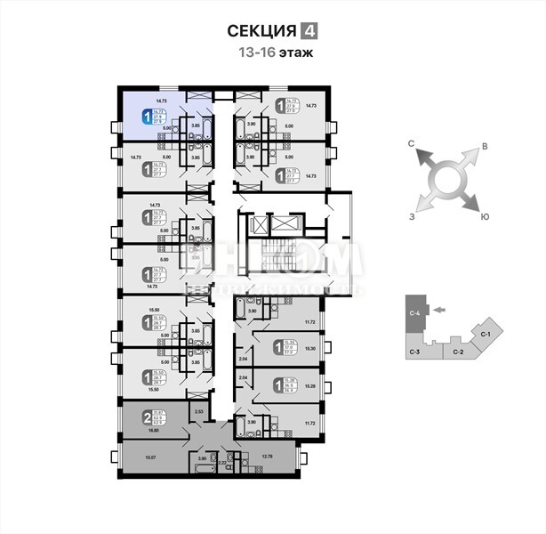 Продажа 1-комнатной квартиры, 27.9 м², этаж 13/16