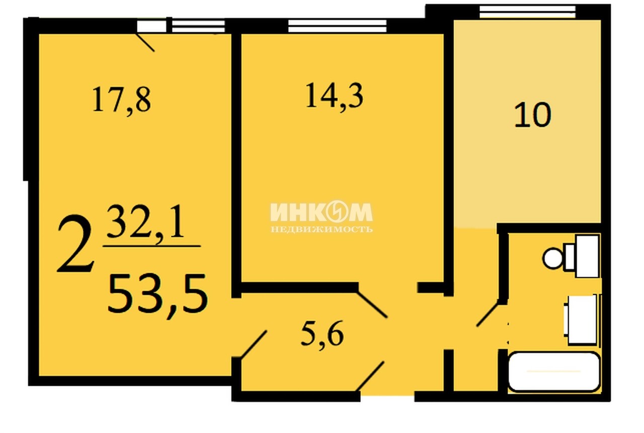 Жилая 32.1 м2