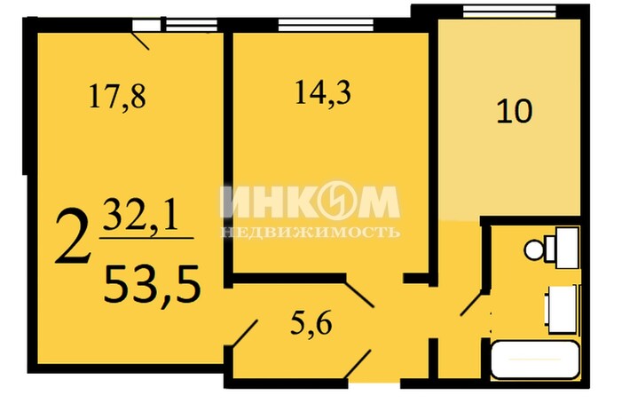 Общая 53.5 м2