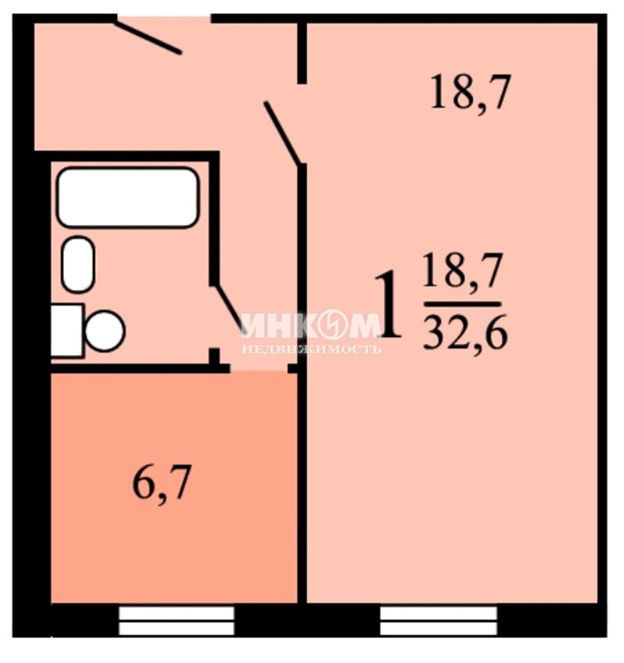 1-комнатная квартира, 6 этаж, 33 м2