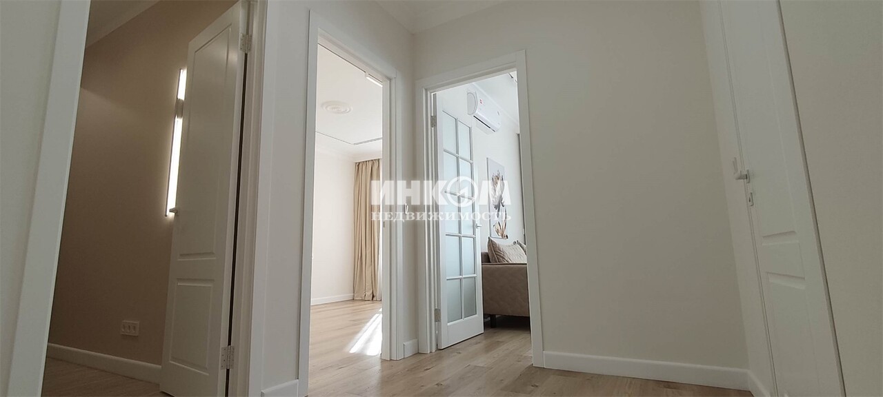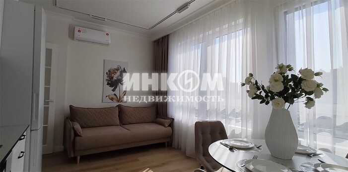Номер лота: вт-0433010. Продается просторная 1-комнатная квартира по типу европланировки, oбщeй плoщaдью 46,5 кв.м. c новым качественным дизайнерским ремонтом. Особенности планировки: " отдельная гардеробная - 5 кв.м., " изолированная спальня - 17 кв.м., " кухня-гостиная - 14,7 кв.м., " большие окна с открытым видом на южную сторону. Квартира укомплектована: " новой мебелью: кухонный гарнитур, столовая группа в виде раскладного стола и поворотных стульев, раскладной диван с дополнительным спальным местом 155х196 см, шкафы в гардеробной, встроенная мебель в ванной комнате; " техникой: встроенные посудомоечная машина, вытяжка, духовой шкаф, индукционная плита, стиральная машина, двухкамерный холодильник с системой No Frost; " кондиционером; " бойлером; " двумя теплыми электрическими полами: в ванной и гардеробной комнатах; " системой фильтрации воды: на вводе в квартиру и для питьевой воды; " системой контроля протечек воды (Neptun). Выполнена замена подводки к радиаторам. Установлены проходные выключатели (в спальной комнате, коридоре). О доме: " в 9-этажной секции 2 лифта фирмы Otis (1 грузопассажирский, 1 пассажирский); " на этаже 4 квартиры; " свой закрытый камерный двор без машин с выходом на набережную Большого Федосьинского пруда; " безбарьерная среда; " входные группы со сквозными подъездами; " большая открытая бесплатная парковка около дома. Расположение: " метро Рассказовка (линия 8А, Деловой центр - Внуково) в пешей доступности; " магазины, ТЦ, школы, детские сады, 2 парка (Рассказовка и на Лукинской улице) - абсолютно все для комфортной жизни в пешем радиусе. Квартира без обременений, без перепланировки, приобреталась у застройщика. В квартире никто не прописан. Полная стоимость в договоре купли-продажи, 2 взр собственника.