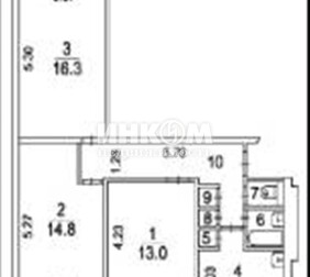 Доля в 3-комнатной квартире, 65.5 м², этаж 9/9