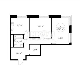 2-комнатная квартира, 65.6 м², этаж 20/25