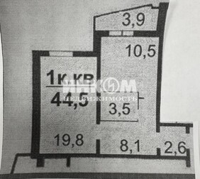 1-комнатная квартира, 44.5 м², этаж 22/24