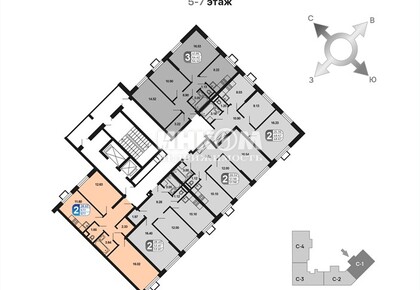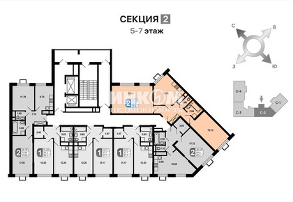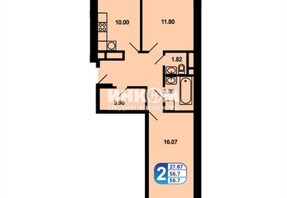 2-комнатная квартира, 56.7 м², этаж 16/16