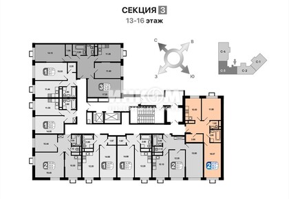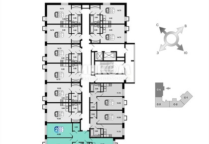2-комнатная квартира, 61.9 м², этаж 16/16