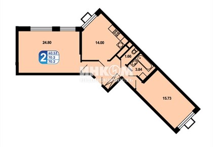 2-комнатная квартира, 70.2 м², этаж 6/16