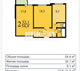 " Площадь: общая - 54,6 м2, жилая - 3...