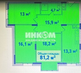 3-комнатная квартира, 81.2 м², этаж 4/4